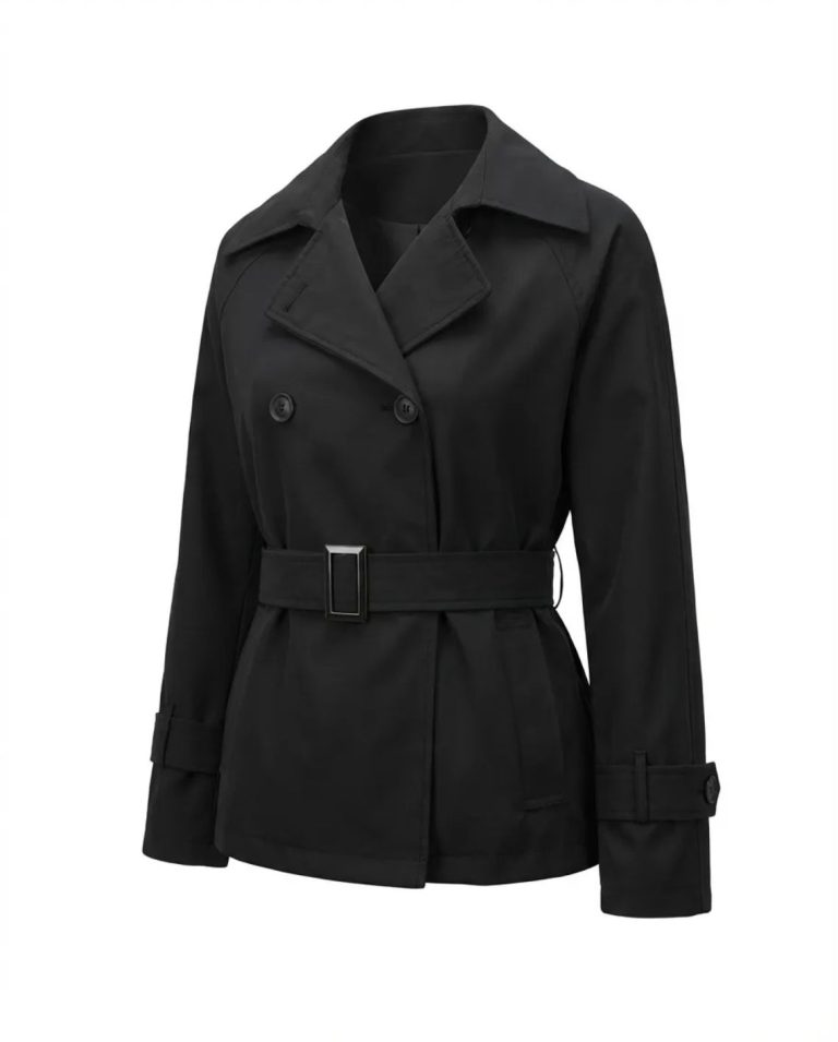 Kısa Kesim Belden Bağlama Siyah Trençkot